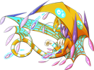 Xirotefani are colourful relatives of both Citherae and Lightcatchers. They are highly iridescent, with the exact hues and shades of their scales changing drastically depending on the lighting. They have what is thought to be a symbiotic relationship with the gems that trail around them; both dragon and gem attract one another, and it's not uncommon to see an adult being orbited by several at a time. If a gem is unable to find a Xirotefani itself, it will attract one to it. Xirotefani themselves are unorthodox breeders, and reproduce by shedding the gems that grow on their wings, spines, and tails. It's unclear where the actual hatchlings come from; a current theory is that the dragon is an inorganic creature created by the gem's energy.