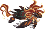 Raeontoru are one of the flashiest residents of desert lakes and rivers. These turtles get a lot of energy from soaking in the sun next to the bodies of water they call home, and the rest from their diet. While technically omnivorous, they spend the time that isn't spent basking lurking in wait underwater, ready to burst out of the water and drag prey in. Their murkier body colors help them stay hidden, but they have another weapon to startle prey when they pounce: as healthy adults, Raeontoru can light up their fur at will into a blazing fiery-looking glow, making them appear to be on fire even underwater.