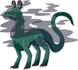 Shadowspewers are quiet, highly territorial creatures. Getting too close to one in the wild—whether aware of its presence or not—is a sure way to get caught in a thick, shadowy fog. Males tend to be more skittish, but will still readily attack if they feel threatened. While the tendrilous horns are smaller on females, the claws are larger, and they are much less yielding to anything they perceive as an intruder. Their diet is largely comprised of bugs and tubers that they dig out of the ground themselves, but they will seek out different sources of food if they can't find enough of their usual fare. The skin on individuals with more colourful Chromas reflect light rather atypically, despite their typically drab hue.