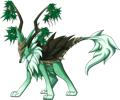 The Barkback is a doglike prey animal that seems rare only due to its ability to hide. This strictly herbivorous mammal not only has thick plates of bark forming an interlocking shell on its back, but also is covered in plant matter—for most of the year, these plants lay dormant, but when "in bloom", females (called does) carry flowers in their ears and manes while males (called stags) have berries hanging from their branch-like antlers. They are social creatures, forming herds as large as food availability will allow. However, they are extremely skittish, and the approach of an unfamiliar creature will cause it to curl up, protected by its shell.