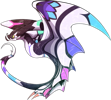 Adorned in an intricate pattern of vibrant colors, the wings of a Razorshriek serve a dual purpose: one, for both sexes to attract equally-colorful mates, and two, to confuse predators attempting to pick one dragon out of a swarm. With their barb-tipped tails also sporting these dazzling colors, a predator which tries to attack a swarm may find itself stung and bitten countless times when it thought it was going for the relatively-unprotected belly of a Razorshriek, making these diminutive predators far more trouble than it's worth to hunt them. Though most wild Razorshrieks are a striking black and white with the only color in their violet markings, it isn't uncommon to see wild adults come in other color variants, which tend to be more vividly colorful; however, the sheer contrast of their standard color scheme seems to help survival by soaking up heat, providing countershading, and making it nearly impossible to stare directly at an active swarm for long periods of time.