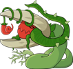 In the wild Demon Weeds are often observed fighting Knuttes, with the former attempting to protect their territory and the latter merely being enticed by the prospect of eating a large, juicy fruit. Due to the two being relatively similar in size, these fights are more a matter of survival than one genuinely attempting to eat the other. While they won't eat any Knutte they ensnare, they will ensure that they, at the very least, are gravely wounded and will think twice before attempting to disturb them again. Curiously, Demon Weeds in captivity are very easy to tame and will readily respond to commands if one makes the effort to train them. They're quite good at knowing better than to try and bite the hand that feeds them.