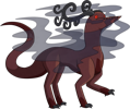 Shadowspewers are quiet, highly territorial creatures. Getting too close to one in the wild—whether aware of its presence or not—is a sure way to get caught in a thick, shadowy fog. Males tend to be more skittish, but will still readily attack if they feel threatened. While the tendrilous horns are smaller on females, the claws are larger, and they are much less yielding to anything they perceive as an intruder. Their diet is largely comprised of bugs and tubers that they dig out of the ground themselves, but they will seek out different sources of food if they can't find enough of their usual fare. The skin on individuals with more colourful Chromas reflect light rather atypically, despite their typically drab hue.