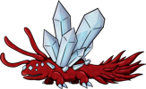 The Diamondeye Quartzback lives deep within caves, causing light layers of frost to consistently form around wherever they choose to nest. Their vision may be poor, but their hearing is excellent. Normally they are quite docile, but if they sense danger they won't hesitate to defend themselves by attempting to freeze their assailant solid. Making loud noises or attempting to sneak up on one is the surest way to get attacked. The safest way to navigate around one is quietly and far away from it, but if it can't be avoided then it is best to appear as indifferent to its presence as possible. Despite being adapted to the pitch black environment of underground, they fare quite well outside in the sunlight.