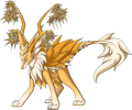 The Barkback is a doglike prey animal that seems rare only due to its ability to hide. This strictly herbivorous mammal not only has thick plates of bark forming an interlocking shell on its back, but also is covered in plant matter—for most of the year, these plants lay dormant, but when "in bloom", females (called does) carry flowers in their ears and manes while males (called stags) have berries hanging from their branch-like antlers. They are social creatures, forming herds as large as food availability will allow. However, they are extremely skittish, and the approach of an unfamiliar creature will cause it to curl up, protected by its shell.