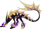 Voidwalkers are a strange species, as intelligent as any other sapient life and yet utterly disinterested in formal communication. From what researchers are able to glean from their limited interactions, Voidwalkers are not native to Chroma at all, despite how well they have adapted to the environment—it seems they are able to quickly travel long distances via use of self-created portals. These portals can be created at will, but the Voidwalker passively creates them beneath and behind their paws when agitated or mobile. Though they can communicate verbally after learning the target language, they favour their natural, emotion-based telepathy. A Voidwalker's face is inexpressive, but its fins display clear emotion. Males carry dark black striping on these fins, thought to be intended to make them appear torn, as if he has participated in and survived many battles.