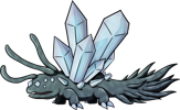 The Diamondeye Quartzback lives deep within caves, causing light layers of frost to consistently form around wherever they choose to nest. Their vision may be poor, but their hearing is excellent. Normally they are quite docile, but if they sense danger they won't hesitate to defend themselves by attempting to freeze their assailant solid. Making loud noises or attempting to sneak up on one is the surest way to get attacked. The safest way to navigate around one is quietly and far away from it, but if it can't be avoided then it is best to appear as indifferent to its presence as possible. Despite being adapted to the pitch black environment of underground, they fare quite well outside in the sunlight.