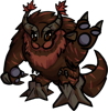 Adult Druigoths are omnivorous, but heavily favor meat, and will attack any prey they think they can overpower with their bulky bodies and sharp claws. Their claws and antennae are covered in protective sharpened wood grown from their symbiotic plant. When raised in captivity and well fed, they can become somewhat tame, but will still attempt to eat any smaller creatures that are incapacitated around them.