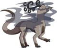 Shadowspewers are quiet, highly territorial creatures. Getting too close to one in the wild—whether aware of its presence or not—is a sure way to get caught in a thick, shadowy fog. Males tend to be more skittish, but will still readily attack if they feel threatened. While the tendrilous horns are smaller on females, the claws are larger, and they are much less yielding to anything they perceive as an intruder. Their diet is largely comprised of bugs and tubers that they dig out of the ground themselves, but they will seek out different sources of food if they can't find enough of their usual fare. The skin on individuals with more colourful Chromas reflect light rather atypically, despite their typically drab hue.