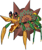 The Long-Nosed Wheel Crab is a bio-mechanical crustacean that is a scavenging omnivore, found in arid climates near bodies of water. It has a symbiotic relationship with a tree-like cycad found along riverbanks in relatively arid climates, known as the Mace Tree. The Mace Tree's heavy, hard-shelled pods can inflict serious injury if they happen to fall on a researcher, but make perfect protective armor and convenient transport for the Wheel Crab, which travels long distances by rolling itself forwards. The spike at the end of this variant's mouth acts as just another spoke of the wheel when it tucks its head in. They reinforce the shells with a lacquer-like secretion, and seeds dislodge and fall from the shell as they roll around, helping the plant spread. Eggs are carried in the mother's humid shell, then the young are deposited into a seed pod that will later become their first shell.