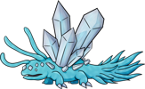 The Diamondeye Quartzback lives deep within caves, causing light layers of frost to consistently form around wherever they choose to nest. Their vision may be poor, but their hearing is excellent. Normally they are quite docile, but if they sense danger they won't hesitate to defend themselves by attempting to freeze their assailant solid. Making loud noises or attempting to sneak up on one is the surest way to get attacked. The safest way to navigate around one is quietly and far away from it, but if it can't be avoided then it is best to appear as indifferent to its presence as possible. Despite being adapted to the pitch black environment of underground, they fare quite well outside in the sunlight.