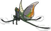 Twin-Sailed Skippers are a large insect found in temperate waterways, wetlands, and lakes. They can even be found in brackish inlets, though seawater doesn't seem to agree with them. These omnivorous creatures will eat anything smaller than them that they can get a good grip on with their grasping front legs. Their other two sets of legs end in paddle-like claws that support their lightweight bodies through surface tension and especially water-repellant structures, allowing them to float around like living boats. While they can quickly dart away using their larger set of legs to 'row', Skippers will more often use their wings as sails to catch the wind and maneuver around while using as little energy as possible.