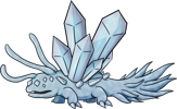 The Diamondeye Quartzback lives deep within caves, causing light layers of frost to consistently form around wherever they choose to nest. Their vision may be poor, but their hearing is excellent. Normally they are quite docile, but if they sense danger they won't hesitate to defend themselves by attempting to freeze their assailant solid. Making loud noises or attempting to sneak up on one is the surest way to get attacked. The safest way to navigate around one is quietly and far away from it, but if it can't be avoided then it is best to appear as indifferent to its presence as possible. Despite being adapted to the pitch black environment of underground, they fare quite well outside in the sunlight.