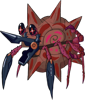 The Long-Nosed Wheel Crab is a bio-mechanical crustacean that is a scavenging omnivore, found in arid climates near bodies of water. It has a symbiotic relationship with a tree-like cycad found along riverbanks in relatively arid climates, known as the Mace Tree. The Mace Tree's heavy, hard-shelled pods can inflict serious injury if they happen to fall on a researcher, but make perfect protective armor and convenient transport for the Wheel Crab, which travels long distances by rolling itself forwards. The spike at the end of this variant's mouth acts as just another spoke of the wheel when it tucks its head in. They reinforce the shells with a lacquer-like secretion, and seeds dislodge and fall from the shell as they roll around, helping the plant spread. Eggs are carried in the mother's humid shell, then the young are deposited into a seed pod that will later become their first shell.