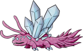 The Diamondeye Quartzback lives deep within caves, causing light layers of frost to consistently form around wherever they choose to nest. Their vision may be poor, but their hearing is excellent. Normally they are quite docile, but if they sense danger they won't hesitate to defend themselves by attempting to freeze their assailant solid. Making loud noises or attempting to sneak up on one is the surest way to get attacked. The safest way to navigate around one is quietly and far away from it, but if it can't be avoided then it is best to appear as indifferent to its presence as possible. Despite being adapted to the pitch black environment of underground, they fare quite well outside in the sunlight.