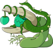In the wild Demon Weeds are often observed fighting Knuttes, with the former attempting to protect their territory and the latter merely being enticed by the prospect of eating a large, juicy fruit. Due to the two being relatively similar in size, these fights are more a matter of survival than one genuinely attempting to eat the other. While they won't eat any Knutte they ensnare, they will ensure that they, at the very least, are gravely wounded and will think twice before attempting to disturb them again. Curiously, Demon Weeds in captivity are very easy to tame and will readily respond to commands if one makes the effort to train them. They're quite good at knowing better than to try and bite the hand that feeds them.
