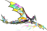 The Lightcatcher is a species of large dragon with stark black-and-white markings and vast, translucent wings. It is distantly related to the Vitrevern. They are large enough to ride, intelligent enough to train, and relatively low-maintenance animals, but their rarity in the wild and poor breeding in captivity make them an unusual steed. Both tamed and wild individuals are curious and playful, however wild Lightcatchers are timid and will often attack or flee when approached. Though hatchlings are the easiest to train and socialize to their handlers, establishing a rapport with a wild adult has proven useful in training mature individuals.