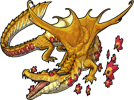 Draumera are a distant relative of many other draconic species on Chroma, and are adapted for a life spent largely in the water. Their wings and tails serve as rudders and a paddle, and they ambush prey from the water's edge or dive down to chase after fish. They are notable for their symbiotic relationship with Discots, a self-replicating biomechanical fish species. Swarms of Discots will hide in a Draumera's scales, serving as makeshift metal armor and allowing the dragons to transport their fish between bodies of water. When diving, the Discots also help the Draumera navigate by producing light. In return, when Draumera take down mechanical or partly mechanical creatures, the Discots break down any metal components to repair themselves and construct new individuals.