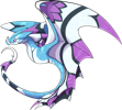 Adorned in an intricate pattern of vibrant colors, the wings of a Razorshriek serve a dual purpose: one, for both sexes to attract equally-colorful mates, and two, to confuse predators attempting to pick one dragon out of a swarm. With their barb-tipped tails also sporting these dazzling colors, a predator which tries to attack a swarm may find itself stung and bitten countless times when it thought it was going for the relatively-unprotected belly of a Razorshriek, making these diminutive predators far more trouble than it's worth to hunt them. Though most wild Razorshrieks are a striking black and white with the only color in their violet markings, it isn't uncommon to see wild adults come in other color variants, which tend to be more vividly colorful; however, the sheer contrast of their standard color scheme seems to help survival by soaking up heat, providing countershading, and making it nearly impossible to stare directly at an active swarm for long periods of time.
