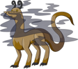 Shadowspewers are quiet, highly territorial creatures. Getting too close to one in the wild—whether aware of its presence or not—is a sure way to get caught in a thick, shadowy fog. Males tend to be more skittish, but will still readily attack if they feel threatened. While the tendrilous horns are smaller on females, the claws are larger, and they are much less yielding to anything they perceive as an intruder. Their diet is largely comprised of bugs and tubers that they dig out of the ground themselves, but they will seek out different sources of food if they can't find enough of their usual fare. The skin on individuals with more colourful Chromas reflect light rather atypically, despite their typically drab hue.