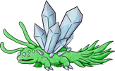 The Diamondeye Quartzback lives deep within caves, causing light layers of frost to consistently form around wherever they choose to nest. Their vision may be poor, but their hearing is excellent. Normally they are quite docile, but if they sense danger they won't hesitate to defend themselves by attempting to freeze their assailant solid. Making loud noises or attempting to sneak up on one is the surest way to get attacked. The safest way to navigate around one is quietly and far away from it, but if it can't be avoided then it is best to appear as indifferent to its presence as possible. Despite being adapted to the pitch black environment of underground, they fare quite well outside in the sunlight.