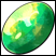 This smooth, glossy egg is mottled with various shades of green and yellow, making it difficult to see when hidden in foliage. When handled or moved, it makes a faint rattling noise, as if annoyed at being disturbed.