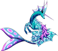 Kelpricorns are aquatic omnivores related to Qidriks and, more distantly, Drakilin. They have vibrant scales which sparkle under the combination of clear waters and a bright sun, and which create a dazzling array of colours to attract mates. Though they normally come in an array of colours, it is unusual but not uncommon to see an individual which bears no colour; these don't survive for very long in the wild. Wild adults are wary of other creatures, and taming one can be extremely difficult; it is therefore easier to raise one from an egg so that it can bond with its handler. In the wild, these creatures form herds of one male and several females; the male defends his harem from predators and rival males. When the herd contains infants and adolescents, the male becomes more aggressive, to protect his offspring. When his sons near adulthood, they leave of their own accord, and are only rarely chased away.