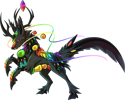 Qidrik are elusive and rare beasts that inhabit forested areas. Resembling a number of Earth's mythological creatures, they have three woody antlers and sharp, hard hooves; orbs of energy ring their necks and something resembling a crystal floats between two of their antler-points. Covered in a chimeric mix of feather, fur, and scale, Qidrik seem to thrive best in temperate conditions. Though rather solidly built, they are fleet of foot and can make their escape at an incredible pace if startled. For a long time, researchers could not capture the beasts, and were forced to study the adults from a distance where their quarry could not hear or smell them. It is only the occasional fawn that can be retrieved from the wild, and only when the mother is unable to defend her offspring.