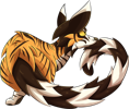 The Kovul is a small, omnivorous predator that lives in trees and underbrush. Though it resembles creatures such as the Arthen and Lutreo, Kovul are completely unrelated, with their resemblances caused mostly by convergent evolution. This arboreal mammal relies on its dappled coat and large ears to evade the larger predators that share its habitat, and escapes up trees when faced with carnivores that can't climb or fly. Because of its small size, it's a common prey animal for larger creatures, but also a common predator for smaller animals. They hunt mostly via ambush, but may take an opportunity to scavenge or run down an injured rodent; if prey is scarce, Kovul will also eat leaves, berries, and bird eggs.