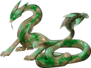 Falsehead Vipers are irritable, highly venomous legged serpents which primarily live in swamps and marshes. They have brilliant, mottled scales which warn of their toxic bites, which are such a strong paralytic that most organic creatures will suffer cardiac arrest from a single bite. However, their venom is not used to kill prey, but rather to defend against predators; despite their great length, the Falsehead is a rather frail animal that relies on its agility and climbing to escape from threats. Its sharp claws and prehensile tail allow it to find purchase on any surface that is even slightly rough or soft enough for the claws to dig in, no matter how vertical it is, and it isn't uncommon to see captive adults halfway up the exterior walls of Headquarters.