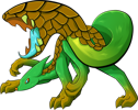 The Dontorex is a frightful, chimeric therapsid and an aggressive predator. A known maneater, it is one of many reasons why exploration of Crop Circle Canyon was delayed. Dontorexes are highly solitary, coming together only to mate and then going their separate ways; a non-mating encounter between two adults is a violent affair. The gaping jaws on their tails allow them to swallow prey much larger than they would normally seem to be able to; much like a snake's, these jaws can unhinge to accommodate for wider animals. Though large prey can make a Dontorex's stomach distended, the acid found in their digestive tract dissolves everything in mere hours. It typically swallows its prey alive and whole.