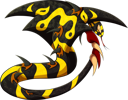 The Aceranguis is a rather common snake in Crop Circle Canyon, much to the detriment of unprepared exploration teams. It is highly venomous, delivering its poison via both its fangs and its scorpion-like tail stinger. In addition to injecting venom, it is able to spray it from its fangs several meters away with incredible precision, aiming for the eyes or visibly open wounds of its attacker. The venom is acidic and corrosive, appearing to do damage to envenomed tissue by directly melting it than relying on neurotoxic or haemotoxic properties. If left on otherwise healthy skin for more than about an hour, it can cause necrosis, but the real danger comes from its tendency to cause permanent damage to eyes and muscle tissue.