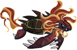 Raeontoru are one of the flashiest residents of desert lakes and rivers. These turtles get a lot of energy from soaking in the sun next to the bodies of water they call home, and the rest from their diet. While technically omnivorous, they spend the time that isn't spent basking lurking in wait underwater, ready to burst out of the water and drag prey in. Their murkier body colors help them stay hidden, but they have another weapon to startle prey when they pounce: as healthy adults, Raeontoru can light up their fur at will into a blazing fiery-looking glow, making them appear to be on fire even underwater.