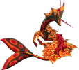 Kelpricorns are aquatic omnivores related to Qidriks and, more distantly, Drakilin. They have vibrant scales which sparkle under the combination of clear waters and a bright sun, and which create a dazzling array of colours to attract mates. Though they normally come in an array of colours, it is unusual but not uncommon to see an individual which bears no colour; these don't survive for very long in the wild. Wild adults are wary of other creatures, and taming one can be extremely difficult; it is therefore easier to raise one from an egg so that it can bond with its handler. In the wild, these creatures form herds of one male and several females; the male defends his harem from predators and rival males. When the herd contains infants and adolescents, the male becomes more aggressive, to protect his offspring. When his sons near adulthood, they leave of their own accord, and are only rarely chased away.