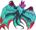 The Kreekiki is a curious animal, resembling a giant bat with four wings, and is a distant relative of the Lutreo. It lacks eyes, but makes up for its blindness with a set of four ears and long whiskers to navigate its environment. Its superb sense of hearing and shrill, high chirps during flight combine to create impressive sonar, allowing it to avoid obstacles and predators as if it had perfect vision. Its whiskers can sense even the slightest vibration in the air, and have photoreceptors near the roots, so it registers and instinctively avoids high light levels. The sensitivity of these whiskers registers not only air vibrations, but also subtle vibrations in the walls; Kreekiki are known to use this trait to fly away from an approaching Tunnelwyrm before it even knows the bat was there.