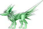 Vullux are curious constructs of living crystal. Resembling foxes in their body structure and behaviour, the nature of their crystalline growths is such that individuals can vary wildly from each other in appearance—one may be covered in spikes, while another may be smoother in appearance or have horns. This crystal is translucent and naturally blue in colour, but adults can be seen in a vibrant array of hues and accent colours, all mimicking known types of gemstone. Vullux make shrill yips when startled or threatened, but can also make a variety of friendlier vocalizations when socializing. They seem easily tamed and are quite social with both handlers and other specimens of their species.