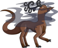 Shadowspewers are quiet, highly territorial creatures. Getting too close to one in the wild—whether aware of its presence or not—is a sure way to get caught in a thick, shadowy fog. Males tend to be more skittish, but will still readily attack if they feel threatened. While the tendrilous horns are smaller on females, the claws are larger, and they are much less yielding to anything they perceive as an intruder. Their diet is largely comprised of bugs and tubers that they dig out of the ground themselves, but they will seek out different sources of food if they can't find enough of their usual fare. The skin on individuals with more colourful Chromas reflect light rather atypically, despite their typically drab hue.
