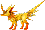 Vullux are curious constructs of living crystal. Resembling foxes in their body structure and behaviour, the nature of their crystalline growths is such that individuals can vary wildly from each other in appearance—one may be covered in spikes, while another may be smoother in appearance or have horns. This crystal is translucent and naturally blue in colour, but adults can be seen in a vibrant array of hues and accent colours, all mimicking known types of gemstone. Vullux make shrill yips when startled or threatened, but can also make a variety of friendlier vocalizations when socializing. They seem easily tamed and are quite social with both handlers and other specimens of their species.