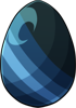 A smooth, dark egg with blue stripes. It has a somewhat dull lustre, with only a faint gloss to it. Tapping can already be heard from inside.