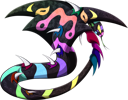 The Aceranguis is a rather common snake in Crop Circle Canyon, much to the detriment of unprepared exploration teams. It is highly venomous, delivering its poison via both its fangs and its scorpion-like tail stinger. In addition to injecting venom, it is able to spray it from its fangs several meters away with incredible precision, aiming for the eyes or visibly open wounds of its attacker. The venom is acidic and corrosive, appearing to do damage to envenomed tissue by directly melting it than relying on neurotoxic or haemotoxic properties. If left on otherwise healthy skin for more than about an hour, it can cause necrosis, but the real danger comes from its tendency to cause permanent damage to eyes and muscle tissue.