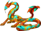 Falsehead Vipers are irritable, highly venomous legged serpents which primarily live in swamps and marshes. They have brilliant, mottled scales which warn of their toxic bites, which are such a strong paralytic that most organic creatures will suffer cardiac arrest from a single bite. However, their venom is not used to kill prey, but rather to defend against predators; despite their great length, the Falsehead is a rather frail animal that relies on its agility and climbing to escape from threats. Its sharp claws and prehensile tail allow it to find purchase on any surface that is even slightly rough or soft enough for the claws to dig in, no matter how vertical it is, and it isn't uncommon to see captive adults halfway up the exterior walls of Headquarters.