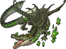 Draumera are a distant relative of many other draconic species on Chroma, and are adapted for a life spent largely in the water. Their wings and tails serve as rudders and a paddle, and they ambush prey from the water's edge or dive down to chase after fish. They are notable for their symbiotic relationship with Discots, a self-replicating biomechanical fish species. Swarms of Discots will hide in a Draumera's scales, serving as makeshift metal armor and allowing the dragons to transport their fish between bodies of water. When diving, the Discots also help the Draumera navigate by producing light. In return, when Draumera take down mechanical or partly mechanical creatures, the Discots break down any metal components to repair themselves and construct new individuals.