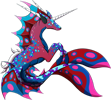 Kelpricorns are aquatic omnivores related to Qidriks and, more distantly, Drakilin. They have vibrant scales which sparkle under the combination of clear waters and a bright sun, and which create a dazzling array of colours to attract mates. Though they normally come in an array of colours, it is unusual but not uncommon to see an individual which bears no colour; these don't survive for very long in the wild. Wild adults are wary of other creatures, and taming one can be extremely difficult; it is therefore easier to raise one from an egg so that it can bond with its handler. In the wild, these creatures form herds of one male and several females; the male defends his harem from predators and rival males. When the herd contains infants and adolescents, the male becomes more aggressive, to protect his offspring. When his sons near adulthood, they leave of their own accord, and are only rarely chased away.