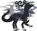 Shadowspewers are quiet, highly territorial creatures. Getting too close to one in the wild—whether aware of its presence or not—is a sure way to get caught in a thick, shadowy fog. Males tend to be more skittish, but will still readily attack if they feel threatened. While the tendrilous horns are smaller on females, the claws are larger, and they are much less yielding to anything they perceive as an intruder. Their diet is largely comprised of bugs and tubers that they dig out of the ground themselves, but they will seek out different sources of food if they can't find enough of their usual fare. The skin on individuals with more colourful Chromas reflect light rather atypically, despite their typically drab hue.