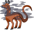 Shadowspewers are quiet, highly territorial creatures. Getting too close to one in the wild—whether aware of its presence or not—is a sure way to get caught in a thick, shadowy fog. Males tend to be more skittish, but will still readily attack if they feel threatened. While the tendrilous horns are smaller on females, the claws are larger, and they are much less yielding to anything they perceive as an intruder. Their diet is largely comprised of bugs and tubers that they dig out of the ground themselves, but they will seek out different sources of food if they can't find enough of their usual fare. The skin on individuals with more colourful Chromas reflect light rather atypically, despite their typically drab hue.